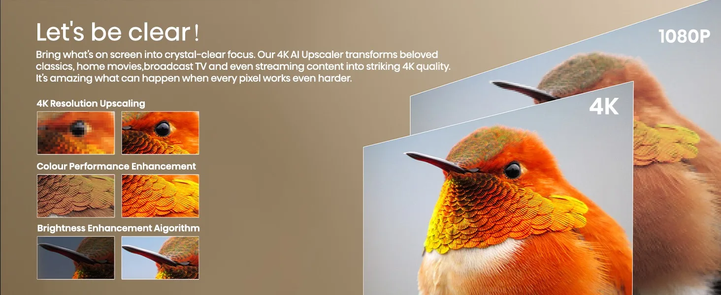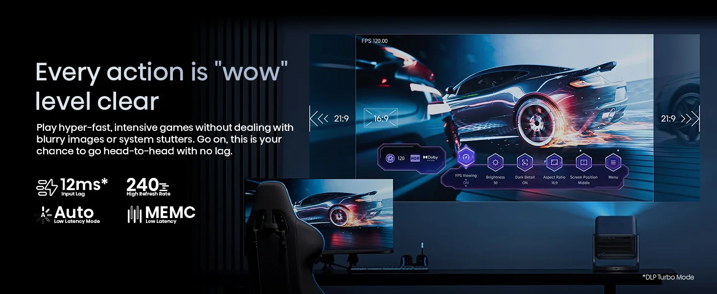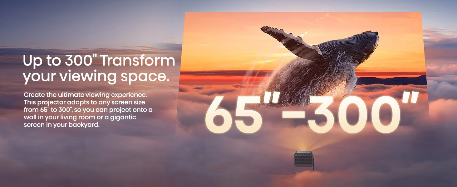 تلفزيون هايسنس ثلاثي ليزر سينما يصل إلى 300 بوصة، 4K HDR10 UHD، جهاز عرض صغير محمول بقوة 2000 لومن مع تركيز تلقائي، رؤية دولبي